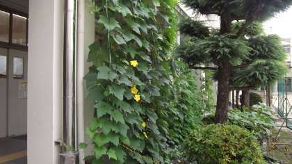 職員室の前に、緑のカーテンができました。