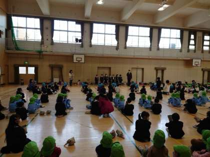 幼稚園、保育園の幼児を本校に招き保幼小連携を講堂で行いました。