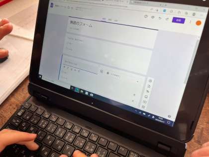 これからアンケートを取り、端末で報告資料を作成していきます。