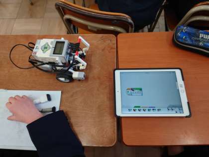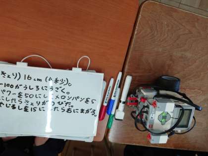 レゴのEV3を使用し、プログラミングを行いました。3人グループで「プログラマー、整備士、指揮者」に分かれて進めています。今後はさらに発展した内容に取り組みます。