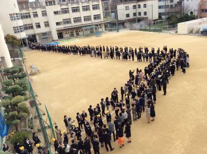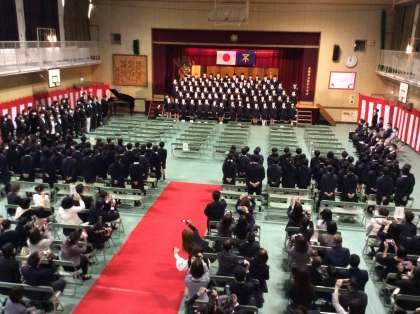 退場は、運動場を通って多くの方々に祝福してもらいました。