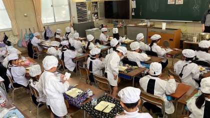 1年生のはじめての給食が始まっています。