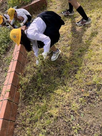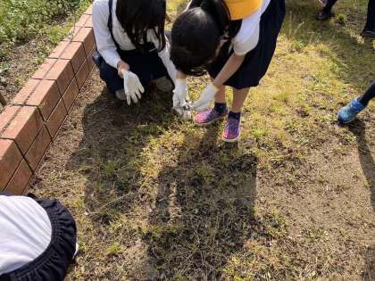 4年生が学習園の花だんや花だんの周りにたくさんあった雑草をぬいてくれました。