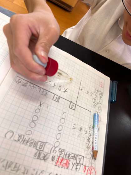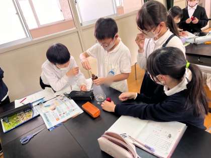 また、自分のノートにヨウ素液を垂らすと、青むらさき色に変化したことから、ノートにもでんぷんがあることを発見しました。