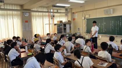 避難訓練の前に、各教室では避難のきまりについて、担任の先生から話を聞きました。