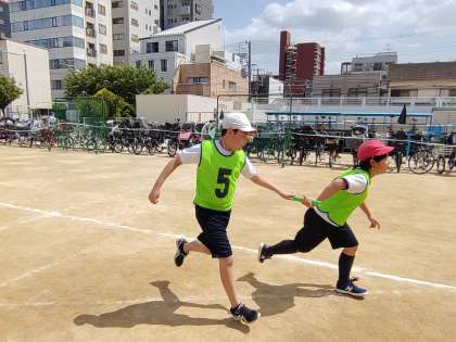 「リード リード ハイ!」子どもたちの声が運動場に響きます。今日は、学習参観日。たくさんの保護者の方にご覧いただき、いつも以上に力が入ります。学習は、グループに分かれて友だちと協力して、子どもたちが中心になって練習を進めていきます。バトンを渡す人と受け取る人の心が一つになれるかどうか。そしてチームとしてまとまっていけるかどうか。練習を通して、一つ一つ課題をこなしていきます。今日は、1学期最後の学習です。この成果は、次回「小学校生活最後の運動会」で披露することになります。6年生の迫力あるリレーを、ぜひ運動会でご覧ください。乞うご期待!