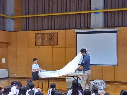 スタッフの方から、シーツのたたみ方を教えてもらいました。