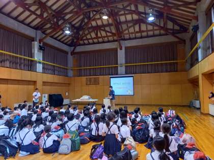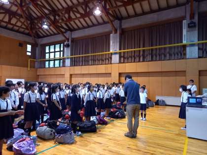 「神戸市立自然の家」に到着し、入所式をしました。