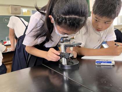5年生はメダカの卵の観察をしました。
