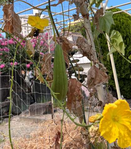 学習園で育てているヘチマの実が大きく成長して、色が変わってきているものもありました。