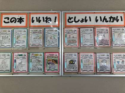 図書委員会で、「この本 いいね!」を紹介する活動を行いました。自分がお気に入りの本、皆に紹介したい本を選んでポスターに描き、掲示しています。新たな本との出会いのきっかけになれば嬉しいです。