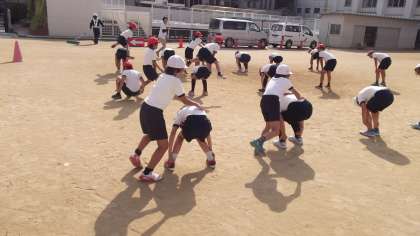 運動会が終わって、秋晴れの空の下5年生の体育の授業を覗いてみました。