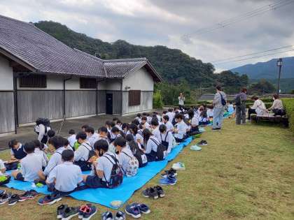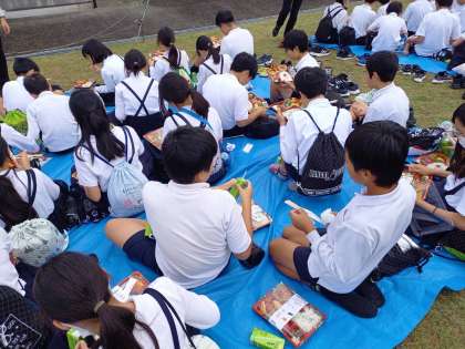 お昼ごはんは、天気のいい秋空の下、お弁当を食べました。