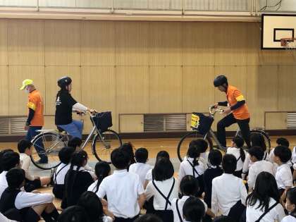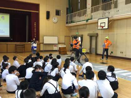 交通安全教室を開催しました。阿倍野警察の方に来ていただき、自転車の乗り方についてご指導したいただきました。実際に自転車に乗りながら、わかりやすく教えていただきました。大切なことは、1車道が原則、左側を通行 歩道は例外、歩行者を優先 2交差点では信号と一時停止を守って、安全確認 3夜間はライトを点灯 4ヘルメットを着用 です。高学年になると自転車事故の割合が大きくなります。日が暮れるのも早くなっています。交通事故に合わないように、「自分の命は自分で守る。」を合言葉に、ぜひお家でも話し合ってみてほしいと思います。