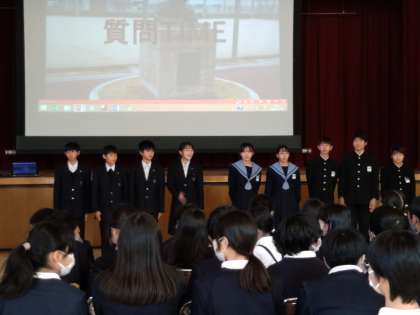 6年生の子どもたちにとって、4月に進学する中学校ってどんなところなのか?不安に思っている子もいることでしょう。毎年、この時期に阿倍野中学校と昭和中学校の生徒会のみなさんが、わざわざ小学校へ来て、各中学校の学習の様子や学校行事の内容をVTRにまとめて、わかりやく紹介してくれる時間を作ってくれています。紹介の後には質問タイムもあり、6年生の子どもたが疑問に思っていることに親切に答えてくれます。こういう時間があるおかげで、子どもたちも安心して進学できそうです。大切な中学校の学習時間を割いて来てくれた生徒会の皆さん、ありがとうございました。でも、小学校の在籍当時とはガラリと変わって、あの落ち着いた話しぶり、態度って、すっごいお兄さん、お姉さんになってます。中学校って、すごい!