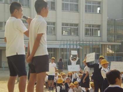 来週は、6年生が修学旅行に行くので、1〜5年生で集会を行います。