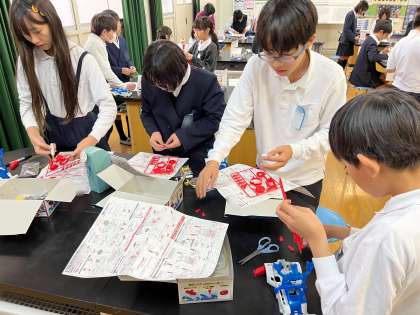 5年生の理科の授業は、熱気と活気に満ち溢れています。今日は、「電気と電磁石」の単元で、子どもたちが電磁石作りに挑戦しています。机の上には、説明書、電池、導線、コイル、鉄芯など、電磁石作りの材料が並んでいます。子どもたちは説明書を手に、真剣な表情で読み解いています。