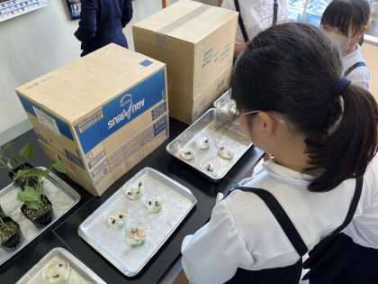 実験の準備は簡単ではなく、どのように実験すればいいか話し合って決めていきました。実験してみると、芽が出たものと出ないものがありました。結果をグループでまとめ、発表し合いました。この実験を通して、種子の発芽に必要なものが明らかになりました。