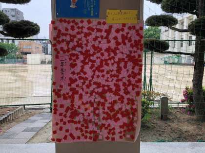 苗代小学校では、低・中・高学年に分かれて読んだ本の数だけ、読書の木に花を咲かせていきます。