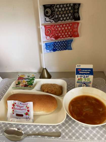 今日の給食では、鶏肉とキャベツ、たまねぎ、トマト、にんじん、パセリなどの野菜が使われています。