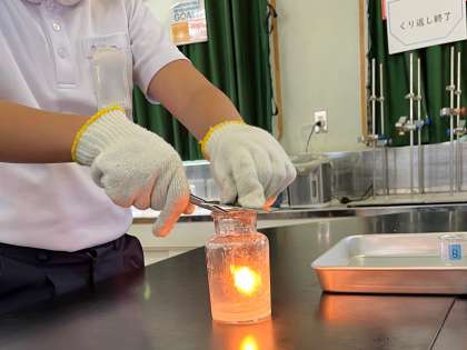 燃焼物質の種類や状態によって、燃え方や燃焼の速さが異なることを学びました。普段は燃えない鉄が、工夫次第で線香花火のように燃えるという、驚きと発見に満ちた実験でした。この経験を通して、燃焼の仕組みについてより深く理解することができ、科学の面白さを改めて実感しました。
