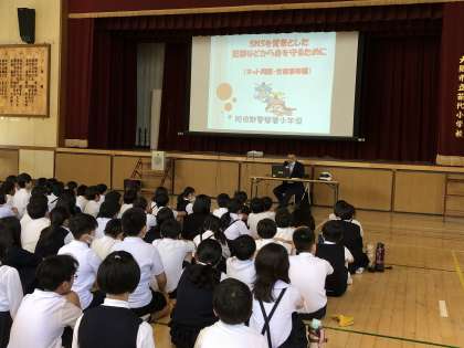 阿倍野警察の方に来ていただき、実際にあったSNS犯罪を事例に出しながら、SNSを利用する際の危険性について教えていただきました。