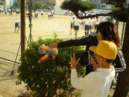 完成した作品を、学校内の好きなところでタブレットを使って撮影しました。