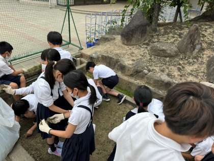 苗代田に稲を植えるために、雑草抜きをしました。たくさんの昆虫がおり、子どもたちは自然に触れながら楽しく雑草を抜いていました。来週には代かきをして、稲を植える予定です。子どもたちも稲を植えることをとても楽しみにしております。