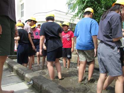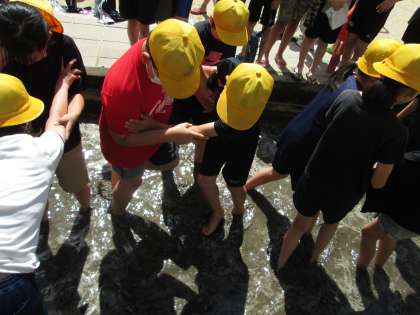 子どもたちは「わ〜ヌルヌルしてる!」「思っていたより気持ちいい!」と大盛り上がり。