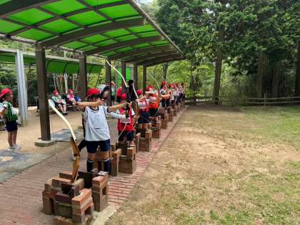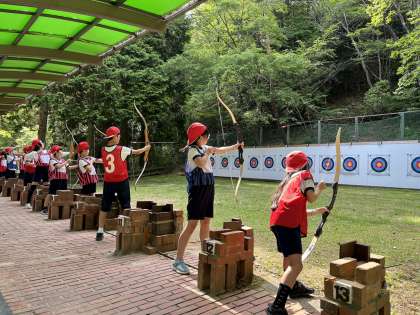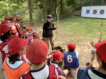 緑あふれる森の中でアーチェリー体験を行いました。