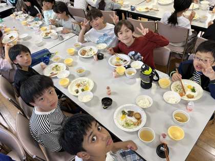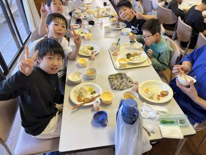 食事中には、昨日の夜の思い出話や、今日の予定について盛り上がる声がたくさん聞こえました。昨日の疲れを感じさせない、5年生たちの元気パワーに、先生たちも思わず笑顔になります。