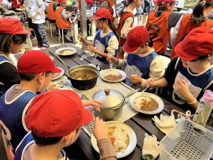 できたてのカレーは格別!みんな笑顔で「おいしい!」と声をあげ、おかわりをする児童もたくさんいました。協力して作り上げたカレーの味は、格別だったようです。