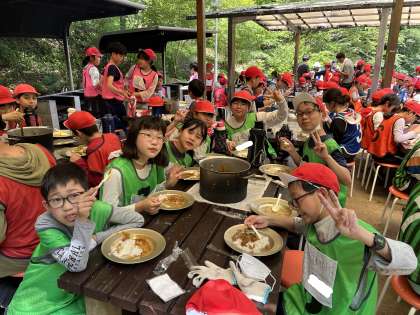 班ごとに役割分担をして、野菜を切ったり、火を起こしたり、ご飯を炊いたり、協力してカレーを作りました。最初はうまくいかず苦労することもありましたが、諦めずに何度も挑戦し、ついに自分たちだけのオリジナルカレーが完成しました。
