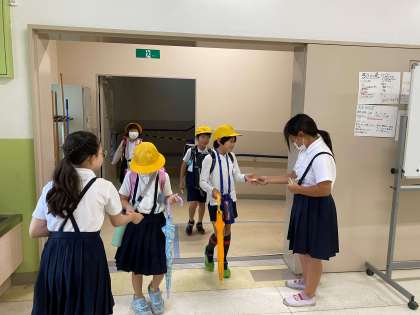 代表委員が各教室の前に立ち、元気よく挨拶をしました。
