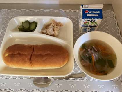 鶏肉のからあげは、カラッと揚がってジューシーで、児童に大人気の献立です。