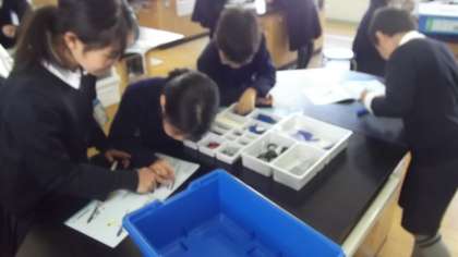 5年生のふりこのきまりの学習のまとめとして、レゴを使ったふりこの実験装置を作って学習しました。かなり細かい部品が多く、組み立てるのも必死でしたが、班のみんなでしっかり相談しながら作り上げることができました。作った装置でいろいろな実験をし、学習内容の確かめを行いました。