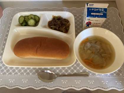 今日の給食には、きゅうりを使ったピクルスが登場しました。