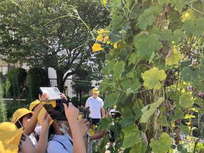 ヘチマの花には、大きく分けて2種類の形があることもわかりました。たくさんの花が咲いている方と、たった1つしか見つけられない、とても珍しい方です。どうしてこんなに数が違うのか、みんな不思議に思いました。