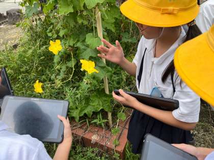 5年生の理科では、ヘチマの花を観察しました。春に咲く黄色い花といえばアブラナを思い浮かべますが、ヘチマの花は全く違うつくりをしていることを知ってびっくり!