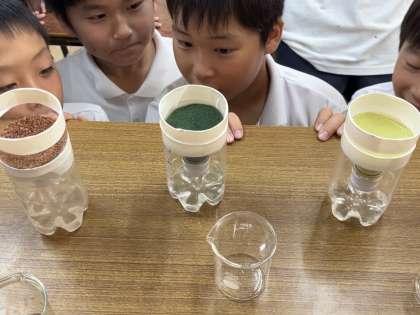 すると、土のつぶの大きさによって水がしみこむ速さが違うことが分かりました。さらに、土の中を通る間に、水はきれいになったり、逆に汚れたりするなど、変わっていることに気づきました。これは、土を通る間に水がきれいにされたり、土の成分が出てきたりしたのかもしれません。