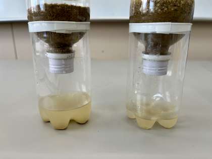 「つぶの小さい土が上にある方が、水が早くしみこむんじゃないかな。」