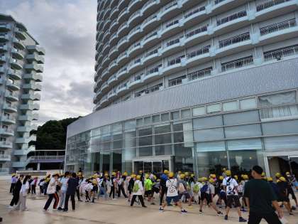 夜のうちに雨が降ったようで湿度の高い朝ですが、子どもたちはみんな元気に起きてきて、朝の集いを行いました。