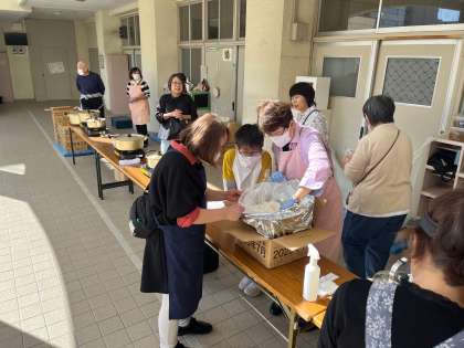 炊き出し訓練では、備蓄されているアルファ米(炊かずに食べられるご飯)を使ってカレーラースが提供されました。