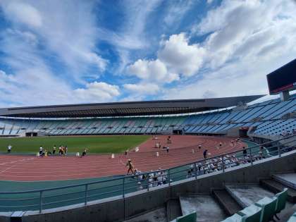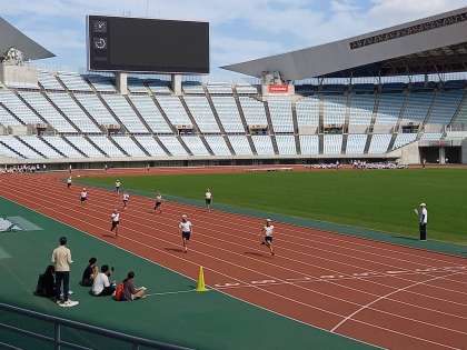 4人で100mずつを走り、チームでトラック1周を競いました。