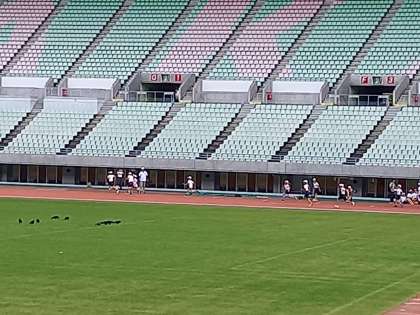 子どもたちは上手にバトンパスをしながら、ゴールを目指してがんっばっていました。