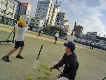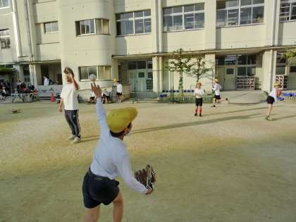 昨年に続き、放課後に阿倍野高校の野球部が来て、キャッチボールや、ティ−バッティングで苗代小学校の子どもたちと交流をしてくれました。