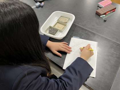 6年生は、前回の授業で運動場の地面を掘り、石を発見するなど、地球のおく深さに触れる貴重な体験をしました。この経験から、子どもたちは「地面の下には、一体どんなものが隠されているのだろう?」という新たな疑問をいだいたことと思います。