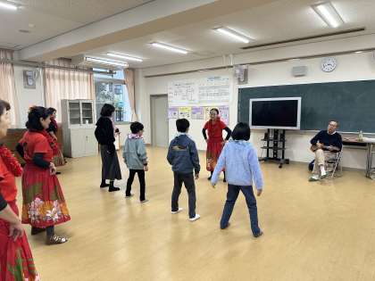 「フラダンス」(多目的室)では、ほのぼのとした曲に合わせて踊る子どもたちの姿が見られました。