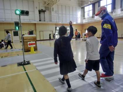 1年生は安全な道路の歩き方を確認しました。「信号を守る」「左右の確認をしっかりする」「止まれの看板があったら、必ず一時停止する」等、これらのルールを守ることで、自分の命を守ることにつながるという意識をもって取り組んでいました。