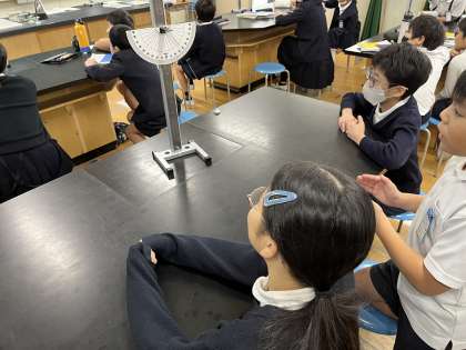 5年生は、新しいテーマとして「ふりこ」の学習がスタートしました。今回の実験では、身の回りの道具であるメトロノームを使い、ふりこの動きをじっくり観察しました。
